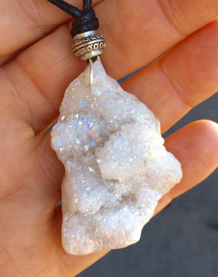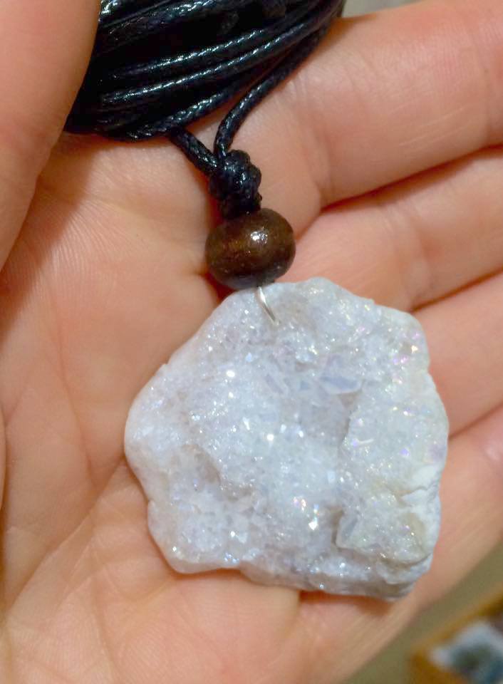A selection of Aura Quartz clusters made up as pendants. Blue colour are Titanium Aura Quartz and clear colour Angel Aura Quartz. These have an extraordinary high vibration and have the ability to expand the consciousness. Prices vary from R130 to R180.