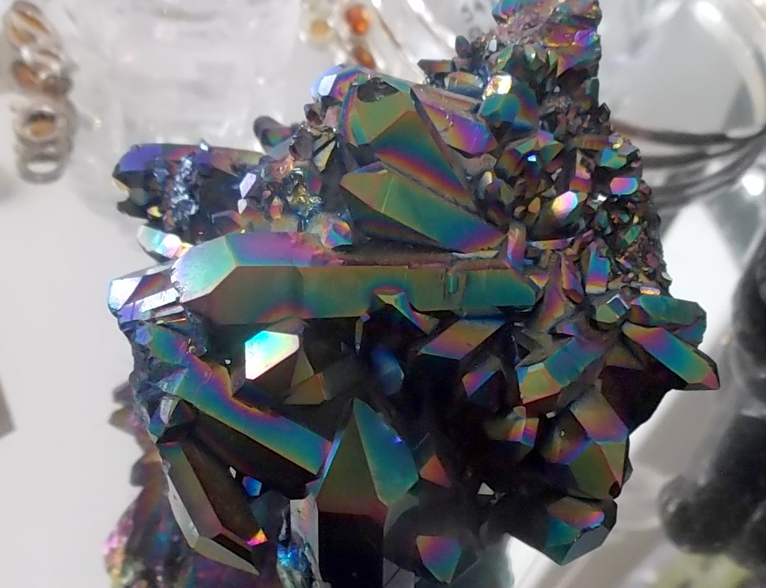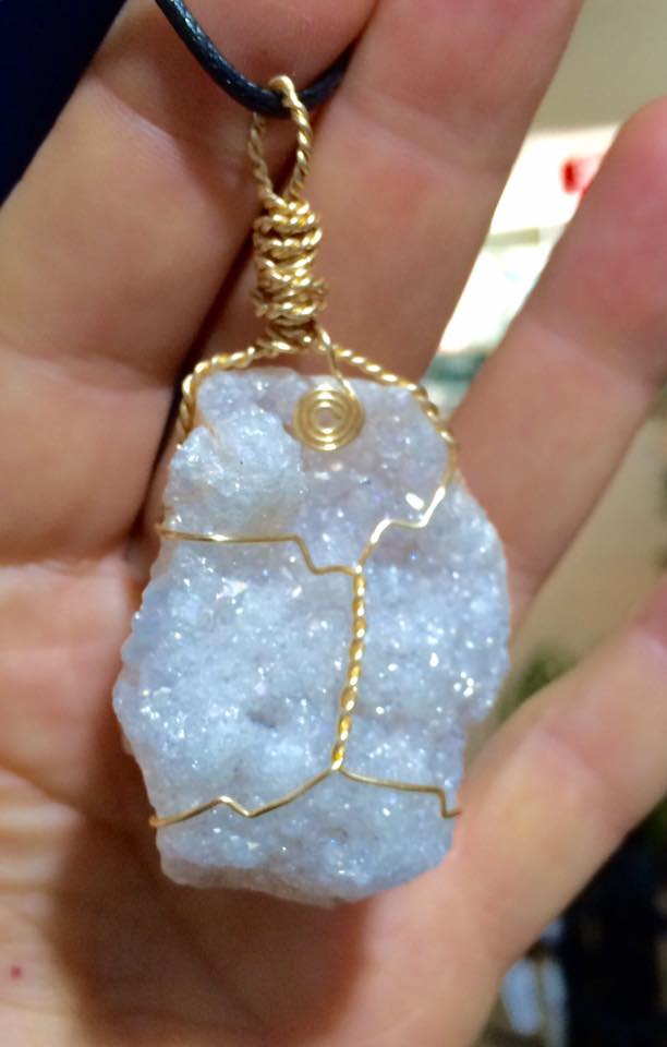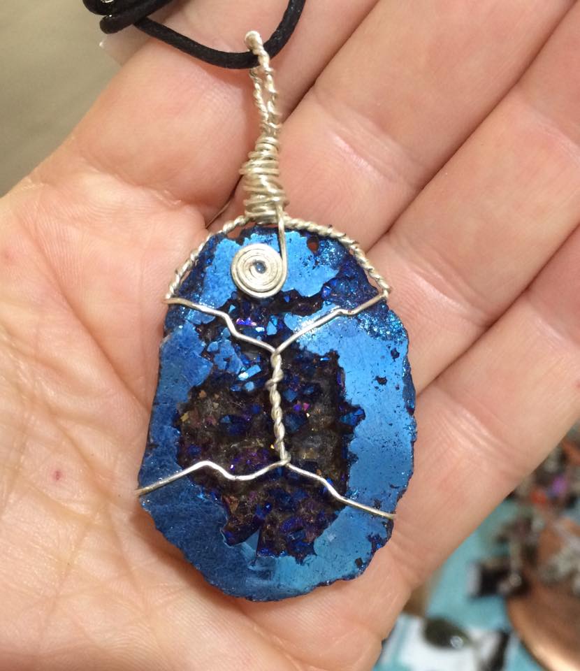 ALso included in these photos are clusters of Titanium or Rainbow Aura quartz clusters which are more expensive. Please request availability, size and price. Clusters range from R300-R500. There are other wire wrapped pendants clusters and crystals elsewhere on this site.